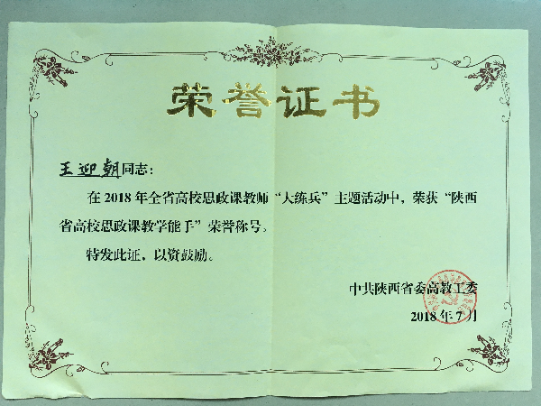 王迎朝,男,1972年12月生,陕西武功人。体育365官网基础教研室专职教师,讲师职称。陕西省宇斌诚律师事务所兼职律师,咸阳市法学会会员。研究方向为马克思主义法学、诉讼法学。