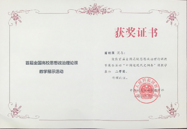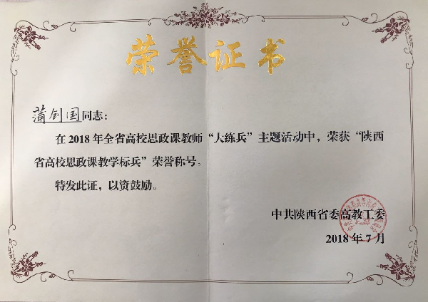 部。获陕西高校思政课教学标兵称号,首届全国高校思政课教学展示二等奖,陕西高校人文社会科学研究优秀成果三等奖。