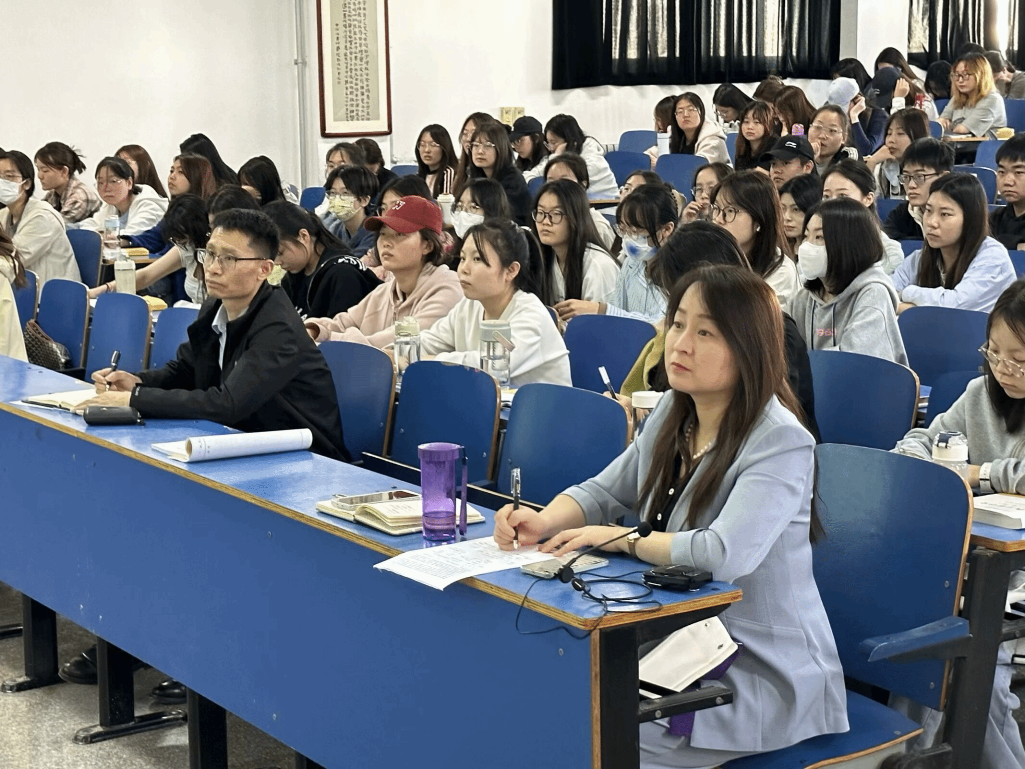 随后,王青翠老师作了题为《以员工学习为中心的教案撰写》的主题讲座。讲座分为四个部分,即新课标理念的运用、教学设计的书写、上好微型课、说课与答辩。王青翠老师着重讲解了初中道德与法治课五大核心素养的内涵及其在教学设计中的运用,强调了撰写教学设计和说课稿的格式,对师范生提出了要热爱教师行业、要苦练基本功、要熟悉教学设计的环节、要有课堂驾驭能力、要处处留心的五大建议。讲座过程中王青翠老师结合自身授课和参赛经历,展示了本人撰写的教学设计,广大师生受益匪浅,讲座效果较好。