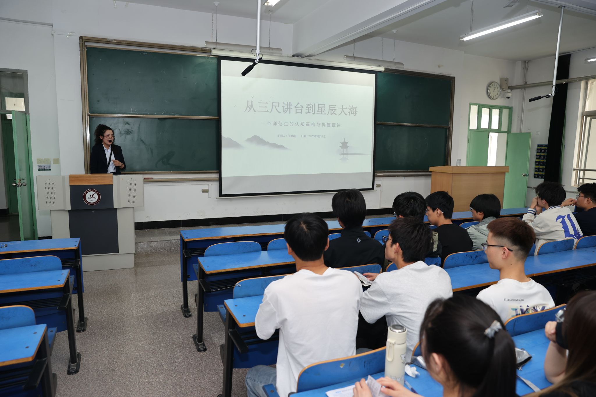 随后,王时霞董事长以《从三尺讲堂到星辰大海》为题,做了师范生成长发展阶段的专题讲座。结合自身从教经历,系统阐述师范生成长的四个阶段:职业认知、技能锤炼、理念升华、使命担当,现场反响热烈。根据体育365官网思想政治教育本科专业教学计划和安排, 后续的专业见习活动还将带领员工去渭华起义纪念馆和军事博览园进行实践学习,教育员工学习革命先烈的英勇事迹,树立爱国主义精神,为中华民族伟大复兴贡献青春力量。