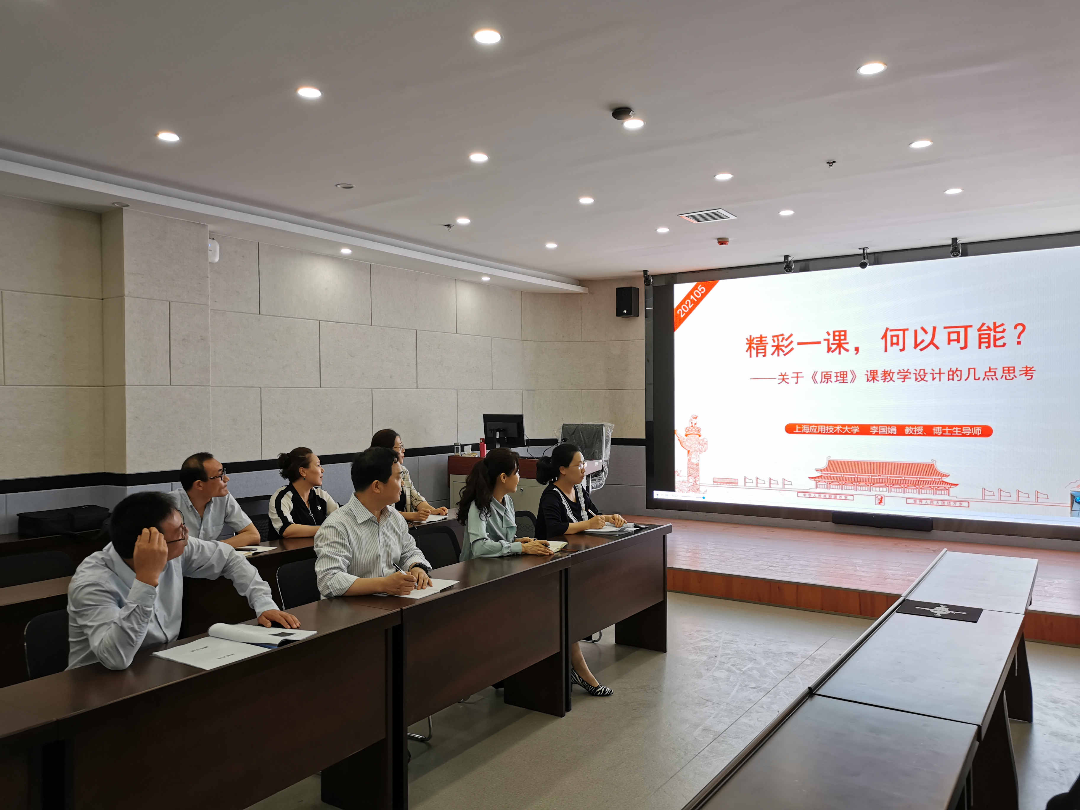 近日,公司原理课教研室全体教师共同学习了来自上海应用技术大学体育365官网经理李国娟教授《“精彩一刻,何以可能?—关于〈原理课〉课堂教学几点思考》的视频讲座,并于讲座后召开了讨论会。