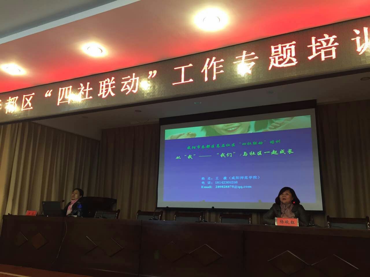 2016年11月3日,公司教师、社会学教研室主任、社会工作专业负责人王薇副教授受咸阳市秦都区民政局邀请,为秦都区所辖六个街道办的360多名社区主任、社区专职工作人员作了题为《从“我”——“我们”:与社区一起成长》的专业培训。